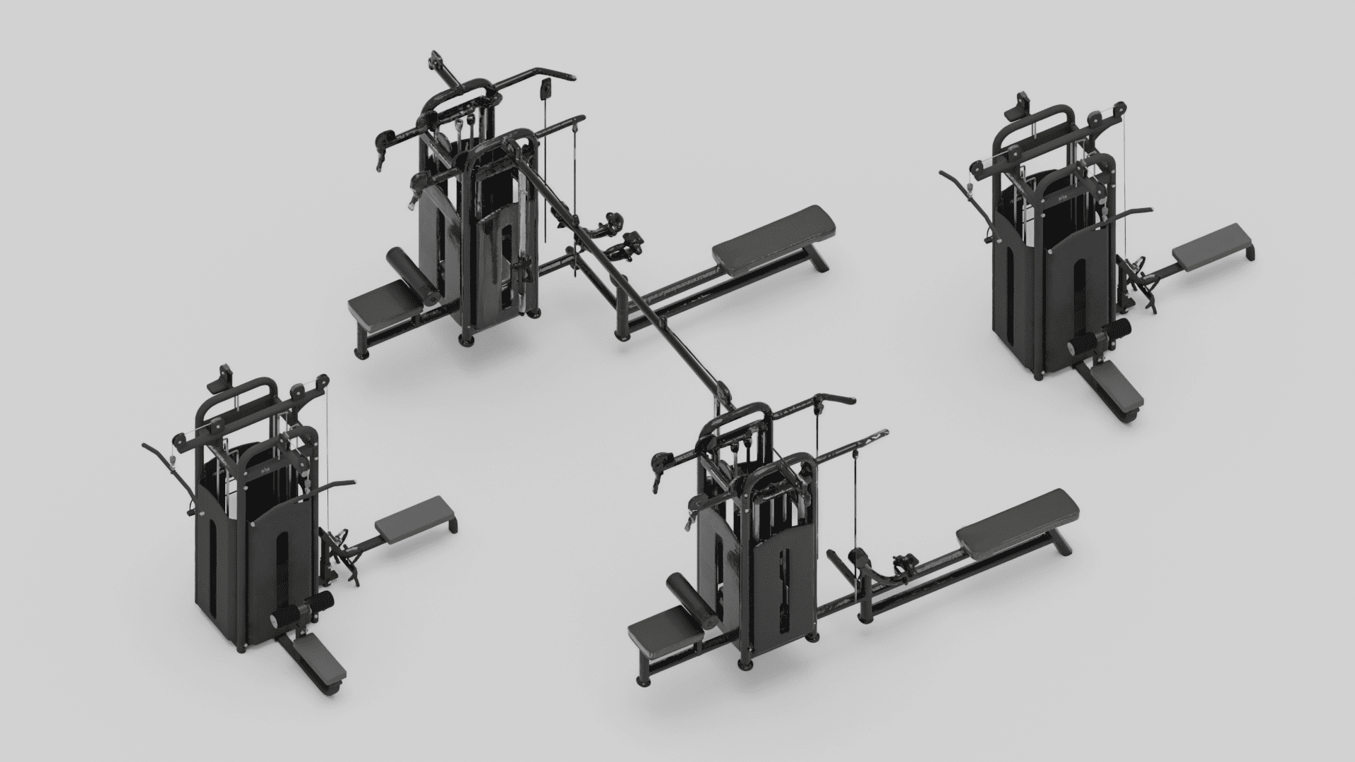 Cet appareil est le niveau supérieur en équipement professionnel. Cette structure comprend quatre stations de travail indépendantes qui permettent à plusieurs utilisateurs de s'entraîner simultanément. Elle est parfaite pour les salles de sport commerciales, hôtels, cliniques de physiothérapie et centres sportifs qui exigent efficacité et fonctionnalité.