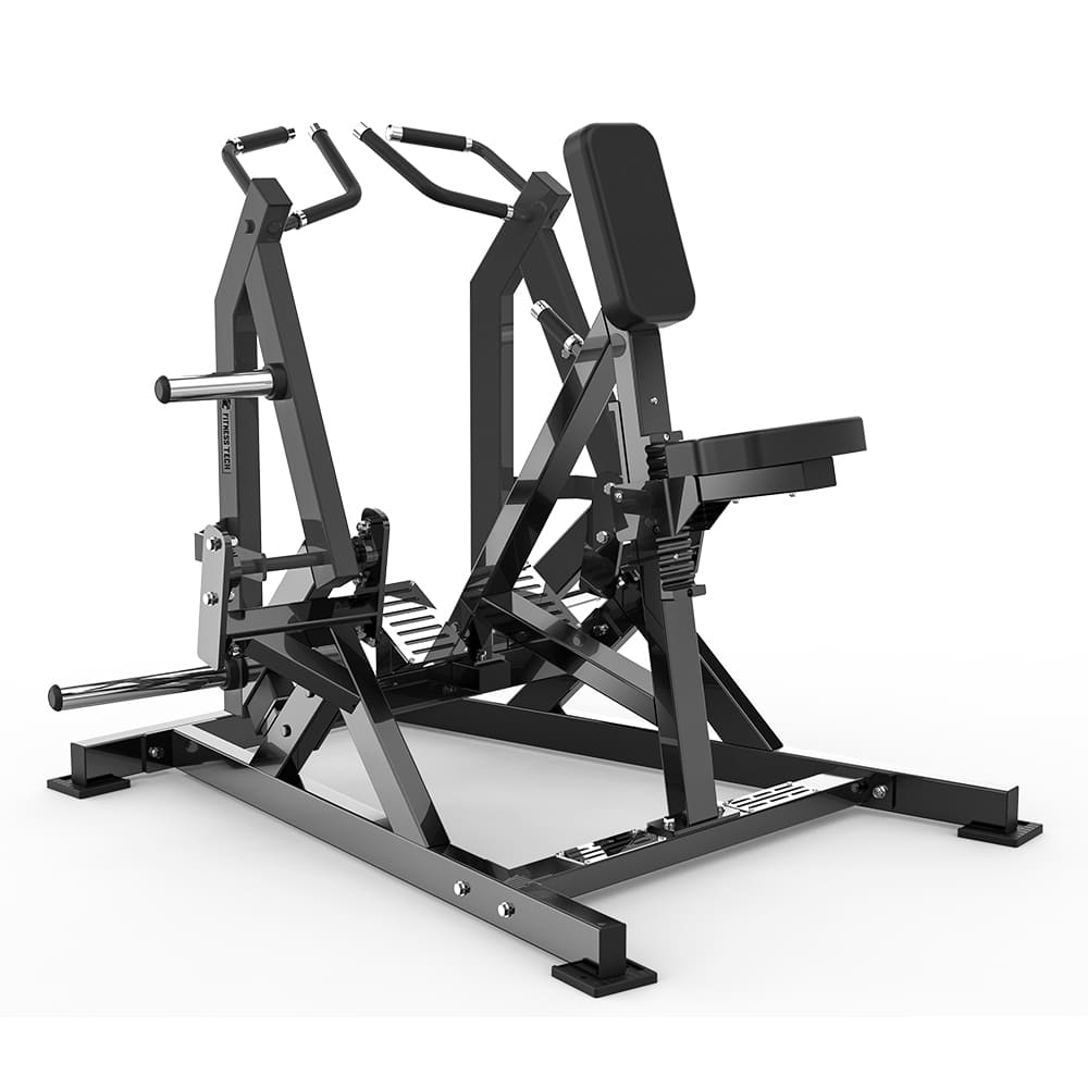 - Plate-loaded system: allows progressive resistance adjustment according to the user’s level.