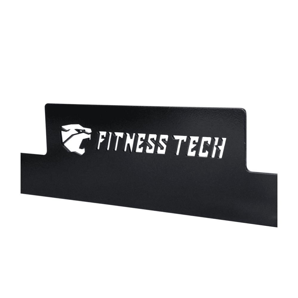 Fabriqué en métal robuste avec finition noire mate, il intègre le logo Fitness Tech gravé au laser, apportant une esthétique professionnelle et durable. Son design est pensé pour s'adapter à la standardisation des tapis du catalogue, permettant de suspendre des modèles de jusqu'à 50 cm de largeur de manière sûre et organisée.